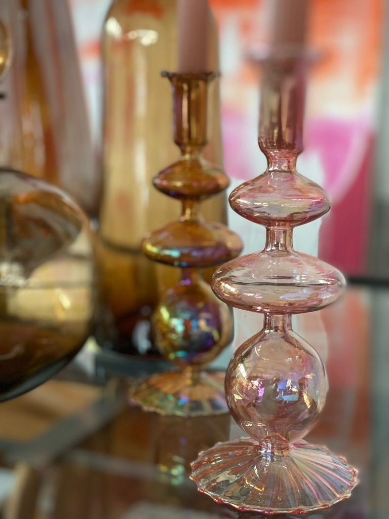 In Wevelinghoven ( ein Stadtteil von Grevenbroich ) an der Oberstraße 36 findet man diese ganz besondere Location, vorne an der Hauptstraße ist ein ehemaliges Kiosk zu einem kleinen, aber feinen Ladenlokal umgebaut und dient Item No. 5 als Schaufenster. Geht man weiter in den Hof, findet man die Werkstatthalle wo schon nach wenigen Schritten klar wird – hier funkelt und strahlt es aus allen Ecken…. elliptische Kristallglas Lampenschirme die wunderbare Farbexplosionen erzeugen, knallbunte Kerzenleuchter die um die Wette strahlen und große Strohlampenschirme mit langen, albernen Halmen können nicht nur im Essbereich wirken sondern sind auch Outdoor ein echter Hingucker.