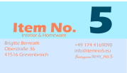 Das besondere Sortiment von Item No. 5 versteht sich so: Stylisch und nostalgisch, Modern und altertümlich, Kunst und Kitsch selbstgemachtes und Designerteil, Wohlfühlen und Zuhause sein !Gehen Sie auf Entdeckungsreise und lassen Sie sich inspirieren.